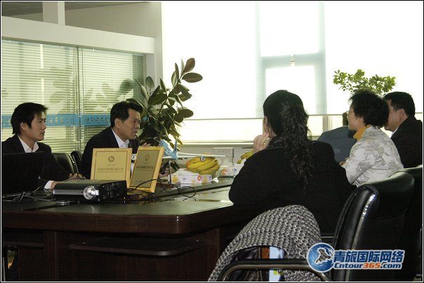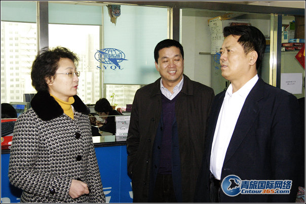 本溪市副市長溫雪瓊女士和本溪市旅游局局長何慶偉先生等人在沈陽青旅董事長倪琛善先生的陪同下參觀沈陽青旅的工作環(huán)境。