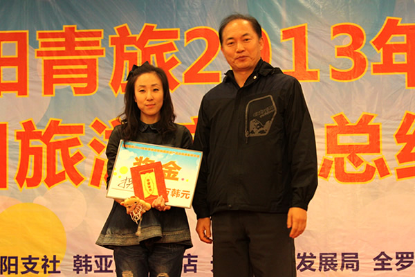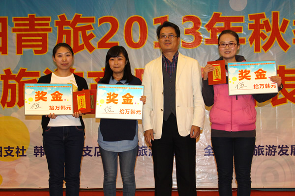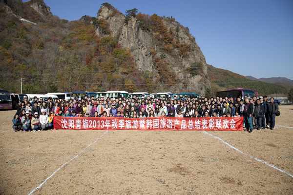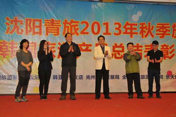 2013年10月12日-13日,沈陽青旅2013年秋季旅游暨韓國旅游產(chǎn)品總結(jié)表彰聯(lián)歡會在本溪關(guān)門山、同泉溫泉度假村舉行。韓國旅游發(fā)展局社長樸正夏、韓亞航空支店長金珍、韓國欣欣旅行社總經(jīng)理金龍渙、韓國新羅免稅店所長金東元、韓國樂天免稅店劉康妮等韓國各界領(lǐng)導(dǎo)、同業(yè)及友人到會同慶。
