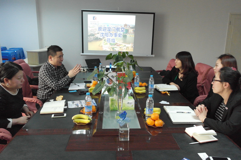 3.11號(hào),澳門(mén)航空公司沈陽(yáng)營(yíng)業(yè)部文德強(qiáng)總經(jīng)理攜航線操作來(lái)蒞臨我公司,雙方就近期泰國(guó)局勢(shì)影響赴泰旅游、臺(tái)灣游火爆沈城等問(wèn)題進(jìn)行溝通。另外在2014年新航線上,雙方達(dá)城共識(shí),共同打造新思路,新產(chǎn)品,新方向。