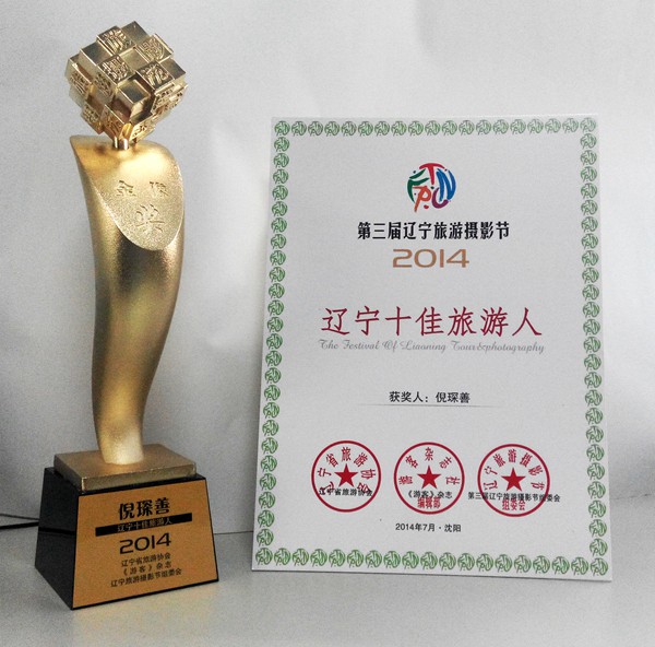 熱烈祝賀沈陽青年國際旅行社董事長倪琛善榮獲2014年度遼寧省十佳旅游人稱號。該獎項由遼寧省旅游協(xié)會、《游客》雜志、遼寧旅游攝影節(jié)組委會聯(lián)合評選,倪琛善董事長更是旅行社行業(yè)中唯一一個獲此殊榮的得獎?wù)摺?