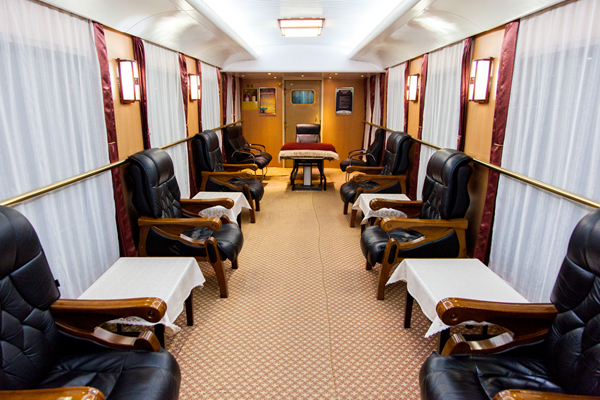 2015年1月3號(hào),新年的伊始,沈陽青旅打響了15年旅游市場(chǎng)的第一炮。2015青旅號(hào)豪華觀光列車正式啟動(dòng),首發(fā)團(tuán)駛?cè)腴L白山。青旅號(hào)作為豪華觀光列車,絕對(duì)的實(shí)至名歸,全車配備64張軟臥,每節(jié)車廂都配備相應(yīng)的多功能活動(dòng)車廂和娛樂車廂,在列車上餐車、小型會(huì)議室、全自動(dòng)麻將機(jī)、卡拉OK、座談室等一應(yīng)俱全,更有高級(jí)包廂,2人一間并配有獨(dú)立衛(wèi)生間。