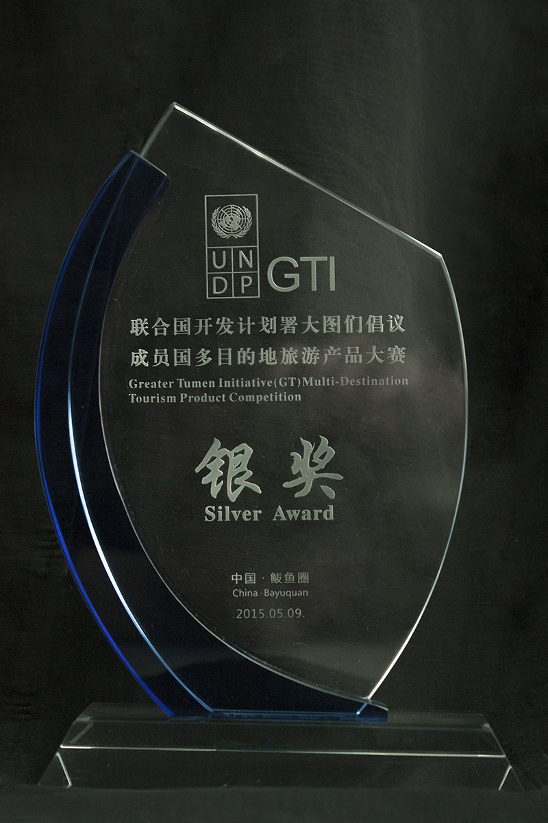 2015年5月9日 我社的旅游產(chǎn)品:游三國、看美山、泡溫泉、(朝鮮、海參崴、長白山、營口天沐)6日游 ,在聯(lián)合國開發(fā)計劃署大圖們倡議成員國多目的地旅游產(chǎn)品大賽中表現(xiàn)優(yōu)異,榮獲銀獎!