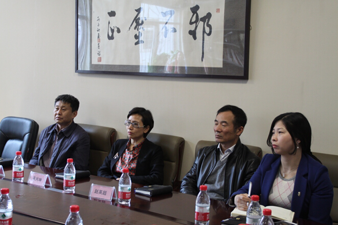 吳興坤副局長(zhǎng)(左二)、趙英超秘書長(zhǎng)(右二)、李雪鵬處長(zhǎng)(左一)聽(tīng)取匯報(bào)