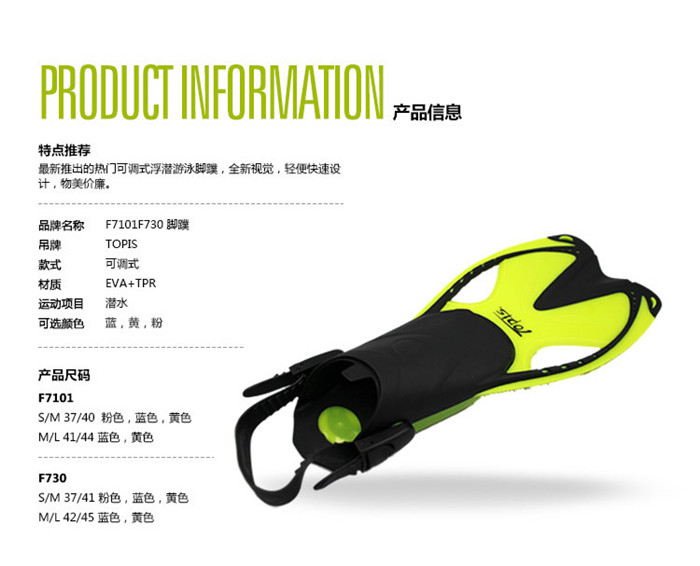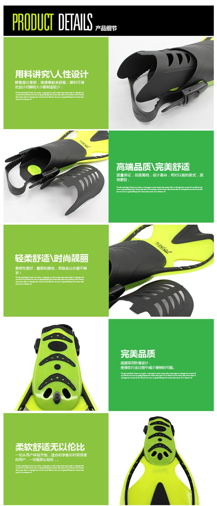 【介紹】:最新推出的熱門可調(diào)式浮潛游泳腳蹼,全新視覺,輕便快速設(shè)計,物美價廉。多吼及流線設(shè)計,使用排水性好,在增強推力的同時更加省力,輕松自如;腳套部分柔軟,使得穿起來舒服;腳扣可調(diào)式設(shè)計對腳碼大小限制造較少;底部采用防滑設(shè)計,使得在行走過程中減少滑倒的可能。全外資企業(yè)出品產(chǎn)品,質(zhì)量保證,品質(zhì)高檔,設(shè)計高尚,相對以前的款式,質(zhì)地更輕,柔韌性更好,靚麗的顏色,相信會讓你愛不釋手!